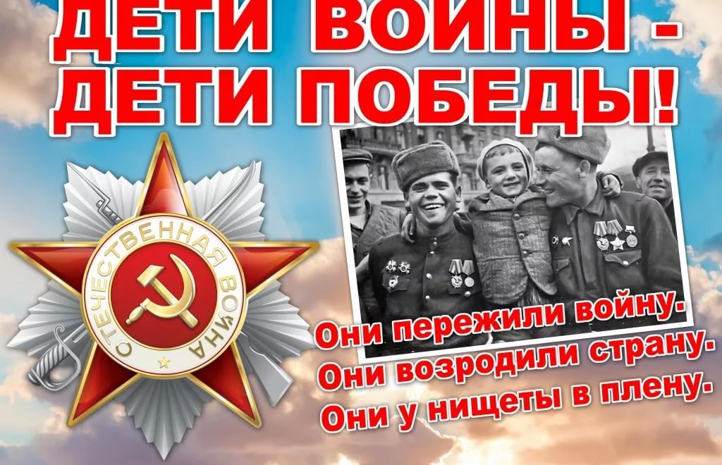 Дети войны.. Как сказала одна мудрая женщина: — У войны не может быть детей. Мы — дети Победы! Послевоенное поколение гордилось своими старшими, вернувшимися с войны и прошедшими фронт. Не называло их ветеранами и фронтовиками. Не глумилось, говоря им, вы выиграли войну. В войну не играют, в ней либо побеждают, либо терпят поражение. Оно училось у победителей бороться и побеждать. И поздравляя их с праздниками, говорило им: — Спасибо вам за вашу Победу! Впоследствии старшее поколение показывало пример Сопротивления разрушителям СССР.