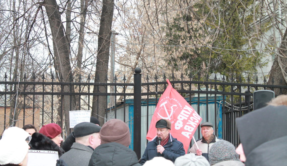 В центре Москвы в Мамоновском переулке во вторник 4 февраля ровно в полдень москвичи собрались на встречу против оптимизации офтальмологической больницы. К собравшимся приехал депутатом Госдумы из фракции КПРФ Валерий Рашкин.