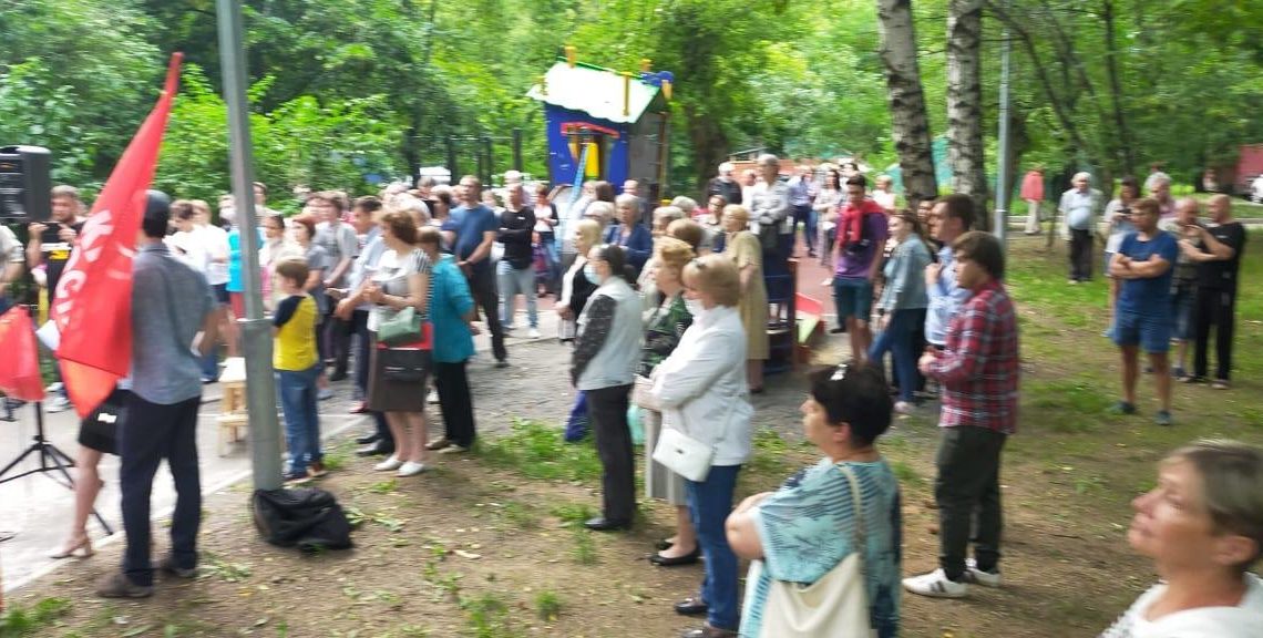 Вечером в среду 29 июля депутаты фракции КПРФ различных уровней встретились с жителями в одном из дворов улицы Рогова в районе Щукино на Северо-западе Москвы для обсуждения вопросов, связанных с активной борьбой инициативной группы за сквер возле бывшего Курчатовского Дома Культуры.