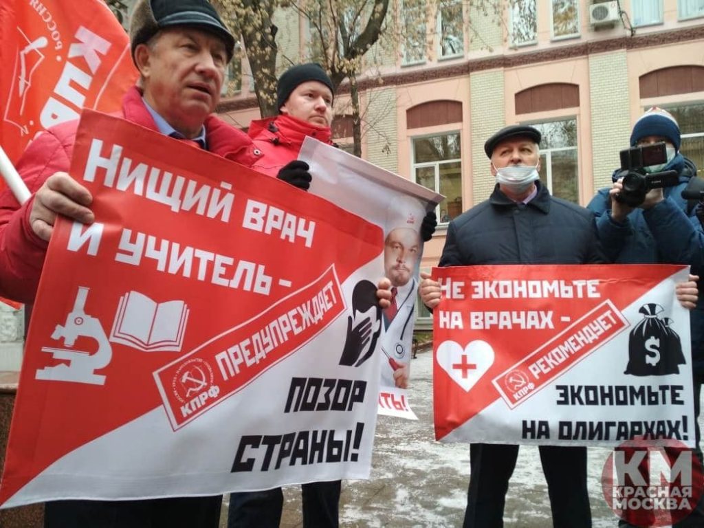 Депутаты Госдумы Валерий Рашкин, Денис Парфенов и Николай Осадчий, депутат Мосгордумы Николай Зубрилин и лидер женского движения «Надежда России» Нина Останина провели встречу с избирателями у здания Министерства здравоохранения РФ. Темой встречи стали многочисленные проблемы в системе медицинского обеспечения граждан, вскрывшиеся во время эпидемии коронавируса.