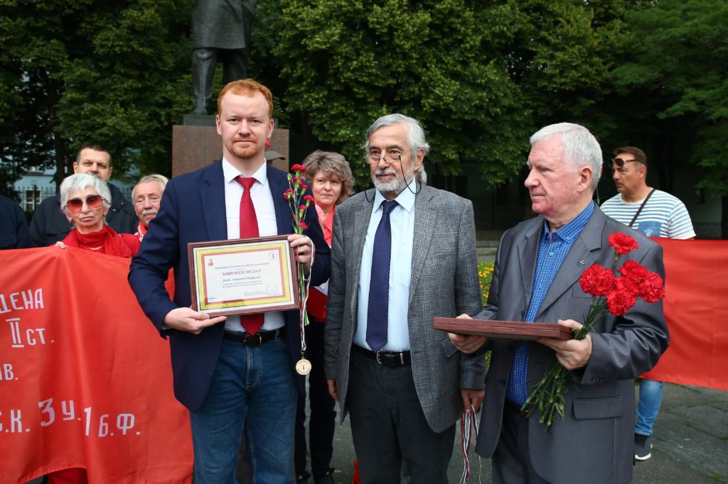 Представитель фонда «Устойчивого развитие Болгарии» в РФ вручил поощрительные грамоты Денису Парфенову, Сергею Тимохов и Татьяне Десятовой за активную работу по интернациональной линии.