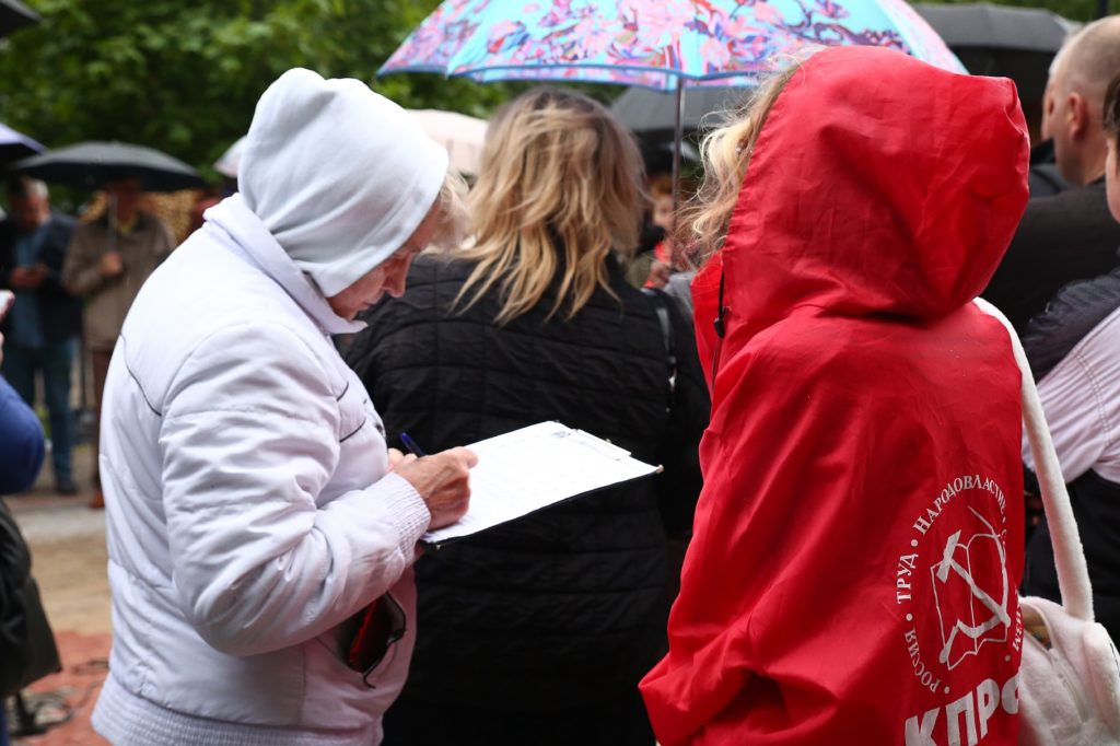 Во время встречи с депутатом активисты КПРФ собирали среди пришедших на мероприятие подписи в поддержку инициатив, вынесенных Компартией на Народный референдум.