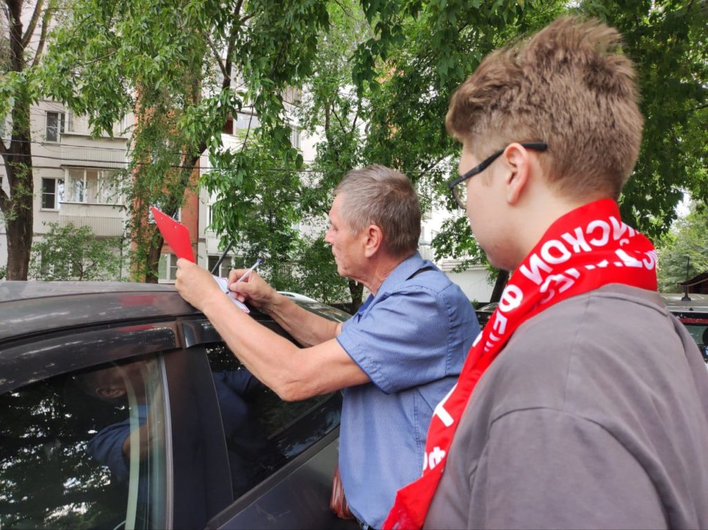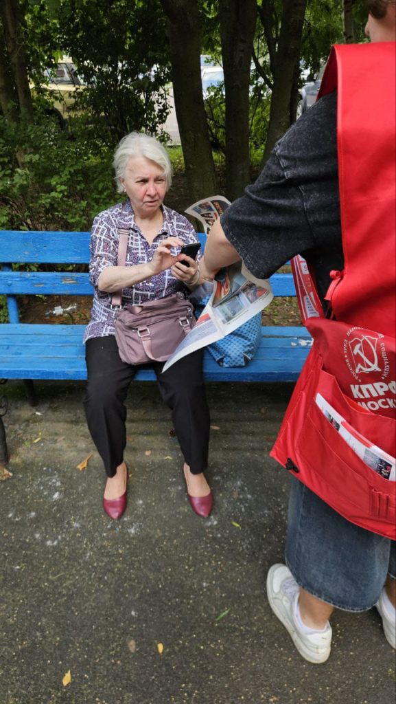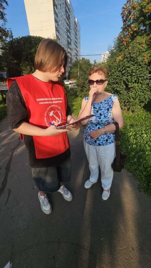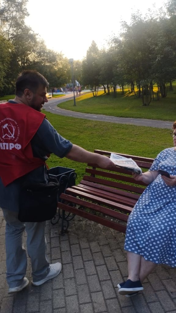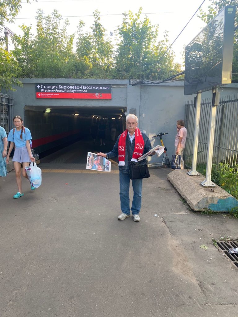 Коммунисты Бирюлево на сборе подписей и на раздаче «Правды Москвы»