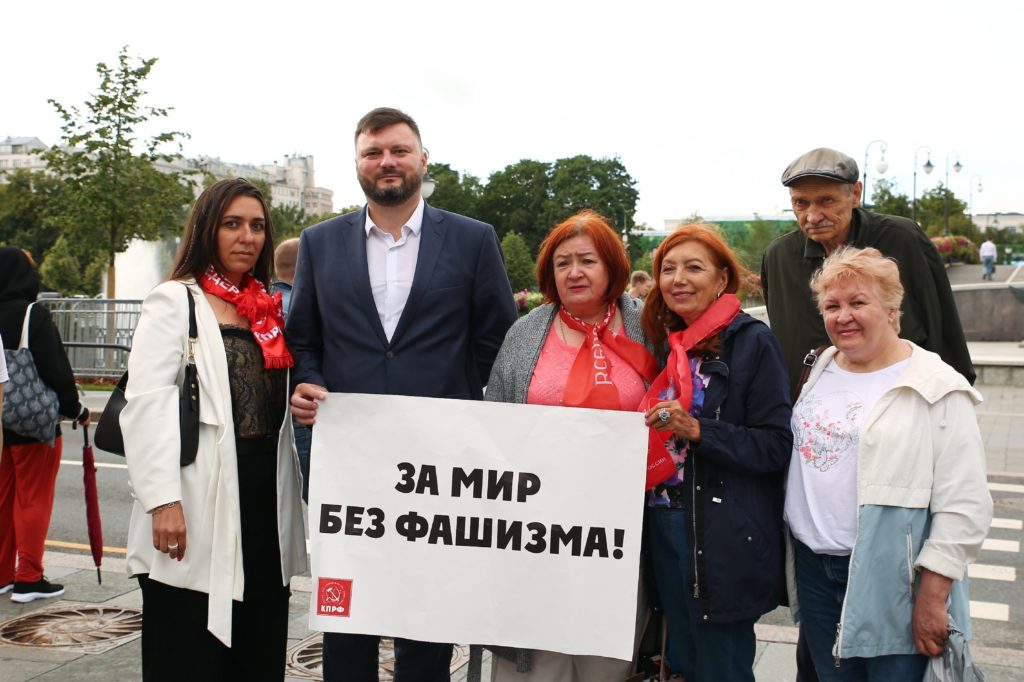 Публикуем фоторепортаж акции протеста против русофобии и агрессивной политики Запада, проведенной КПРФ 7 августа 2025 года.