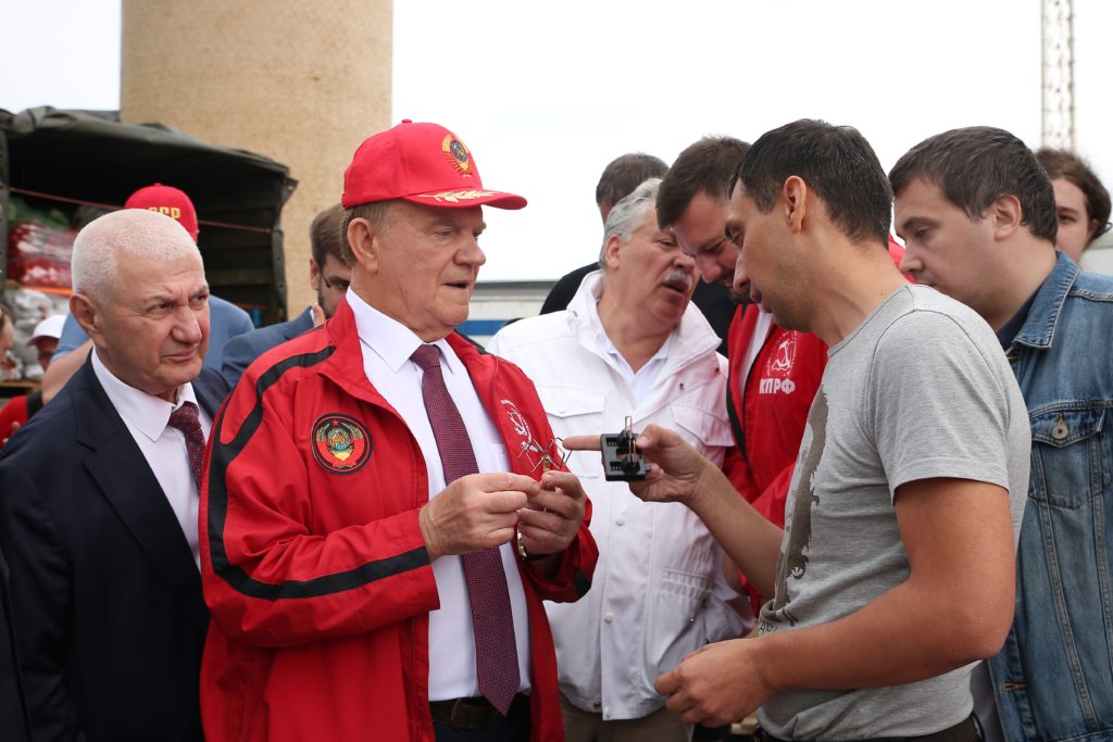 Во время импровизированного митинга были вручены партийные и комсомольские билеты недавно вступившим в ряды КПРФ и ЛКСМ РФ.