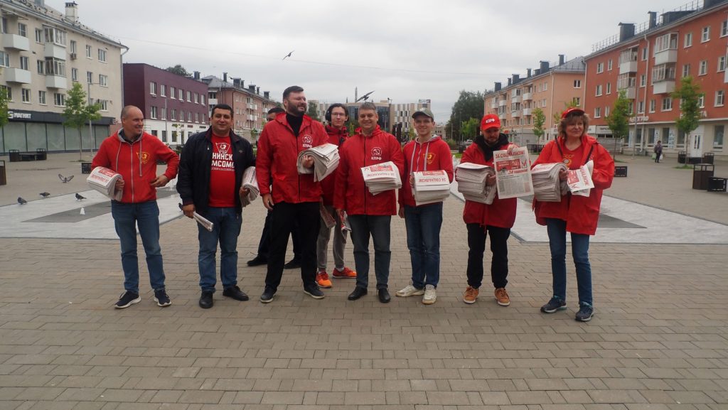 Представители МГК КПРФ совместно с коммунистами Калужской области распространили на улицах Обнинска агитационные материалы, содержащие информацию о деятельность кандидатов в губернаторы и в депутаты, об их предвыборной программе.