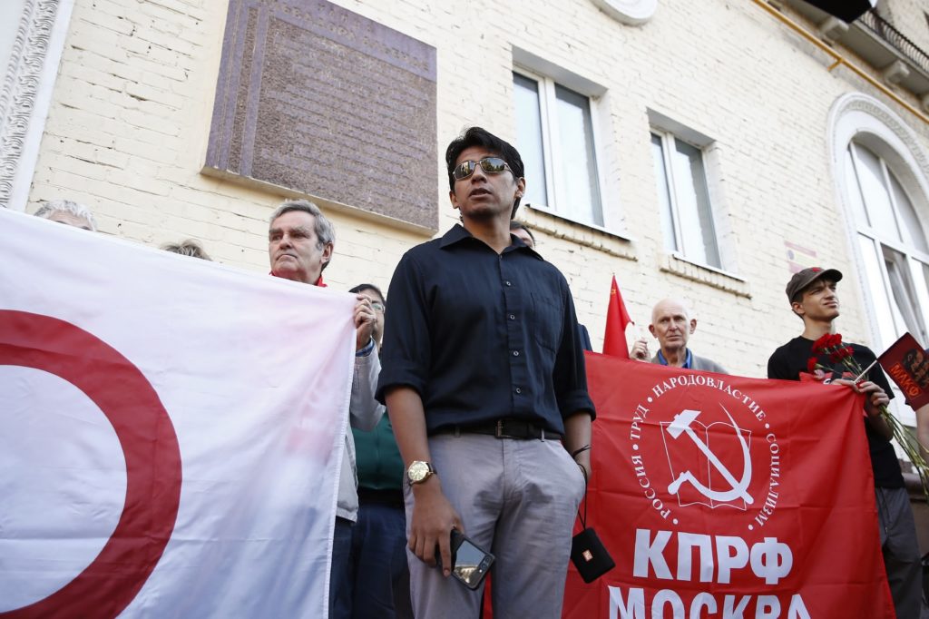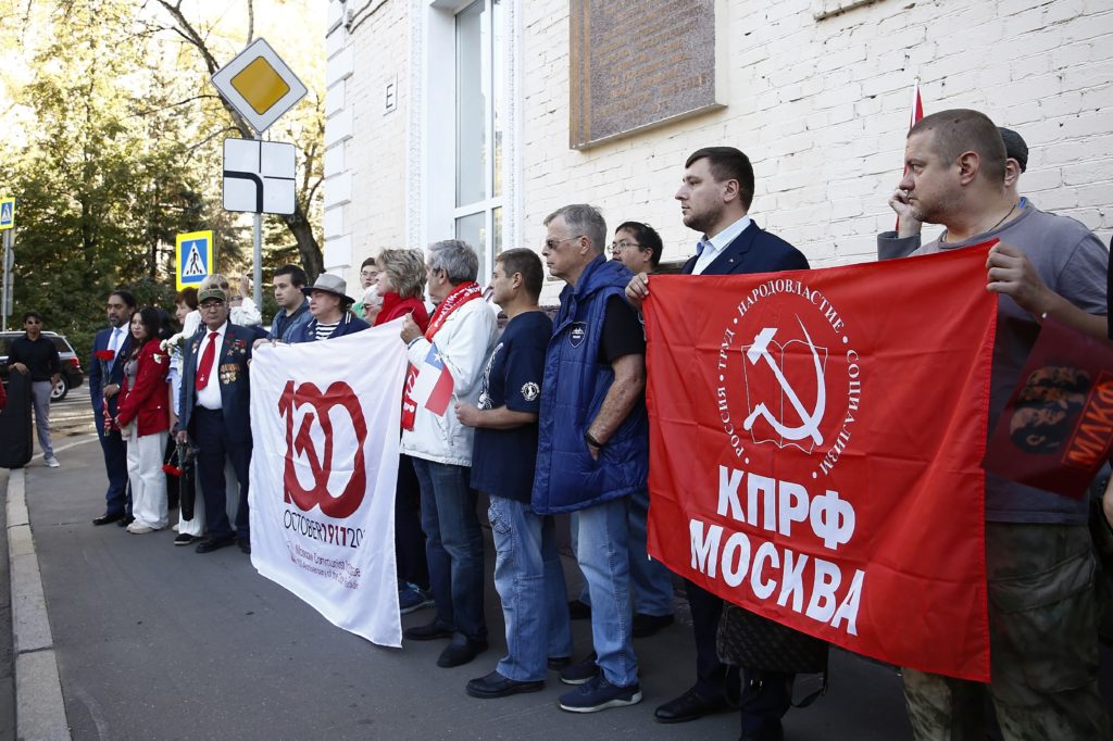 Здесь прошел короткий митинг солидарности, на котором выступили представители дипкорпуса латиноамериканских стран в Москве, коммунисты и комсомольцы столицы, члены Интербригады МГК КПРФ. Открыла и вела митинг член бюро МГК КПРФ Татьяна Десятова — руководитель международной комиссии горкома и Интербригады, первый секретарь МПО КПРФ «Севастопольское».