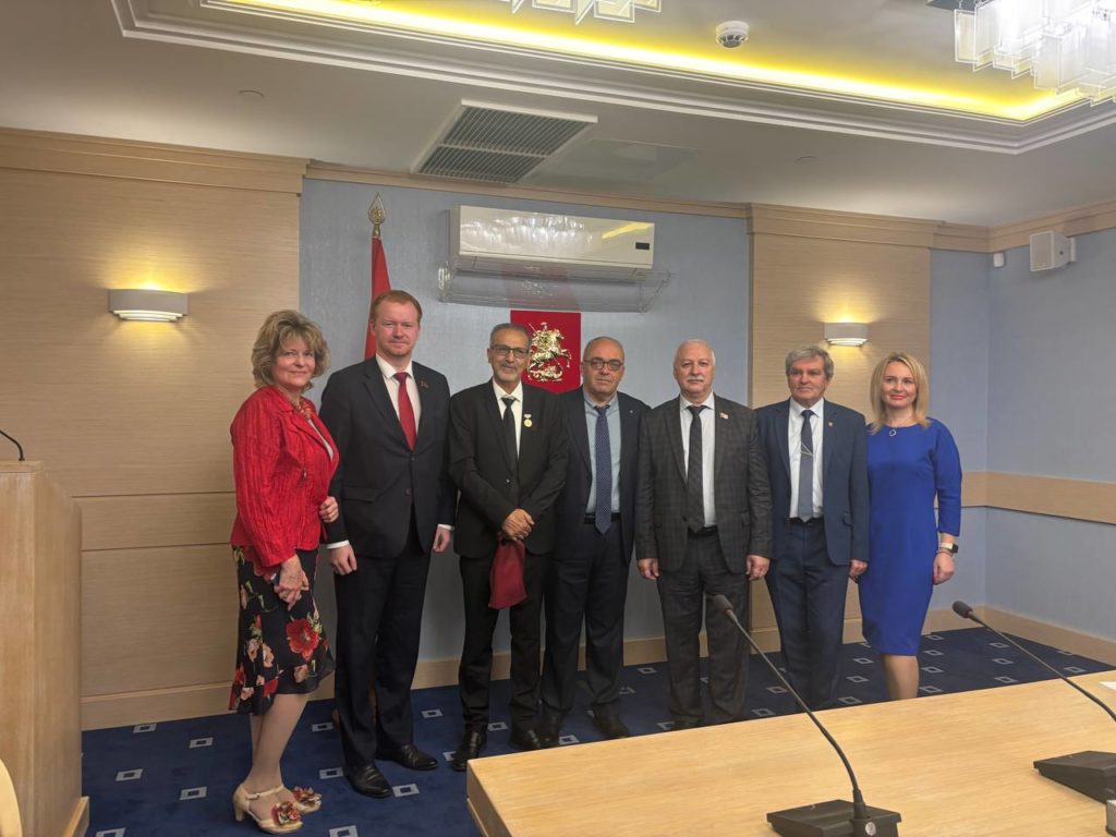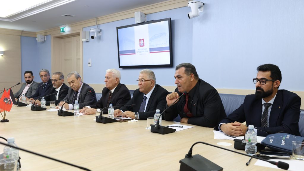 В стенах Московской городской Думы прошла встреча представителей российской компартии с делегацией Государства Палестина. От российской стороны во встрече приняли участие депутаты Государственной Думы РФ Денис Парфёнов и руководитель фракции КПРФ в Мосгордуме Николай Зубрилин, координаторы Интербригады КПРФ Сергей Тимохов и Татьяна Десятова, а также активисты Сталинградского райкома КПРФ Сергей Мурыгин и Наталия Хрусталева.