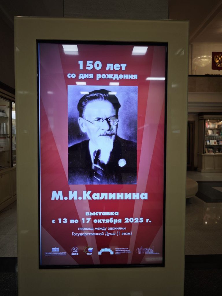 15 октября 2025 года активисты Московского городского отделения Общероссийской общественной организации «Дети войны» во главе с его руководителем Ю.Е. Лапиным в составе группы посетителей присутствовали на открытой в Государственной думе выставки, посвященной 150-летию со дня рождения одного из создателей Советского государства Михаила Ивановича Калинина.