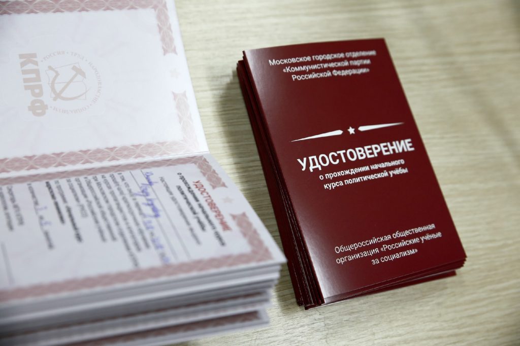 Прошедшие Школу молодого коммуниста МГК КПРФ продемонстрировали высокую усвоенность программы курса, успешно сдав зачет. Затем каждому из них И.Н. Макаровым были вручены удостоверения об окончании курсов политучебы столичной партийной организации.