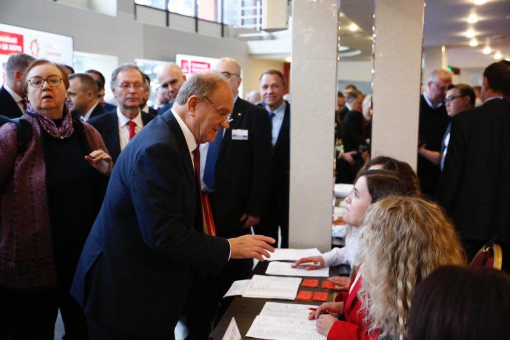 После этого Председатель ЦК КПРФ Г.А. Зюганов вручил партийные билеты новому пополнению КПРФ. Участники Пленума поздравили вступивших в партию продолжительными аплодисментами.