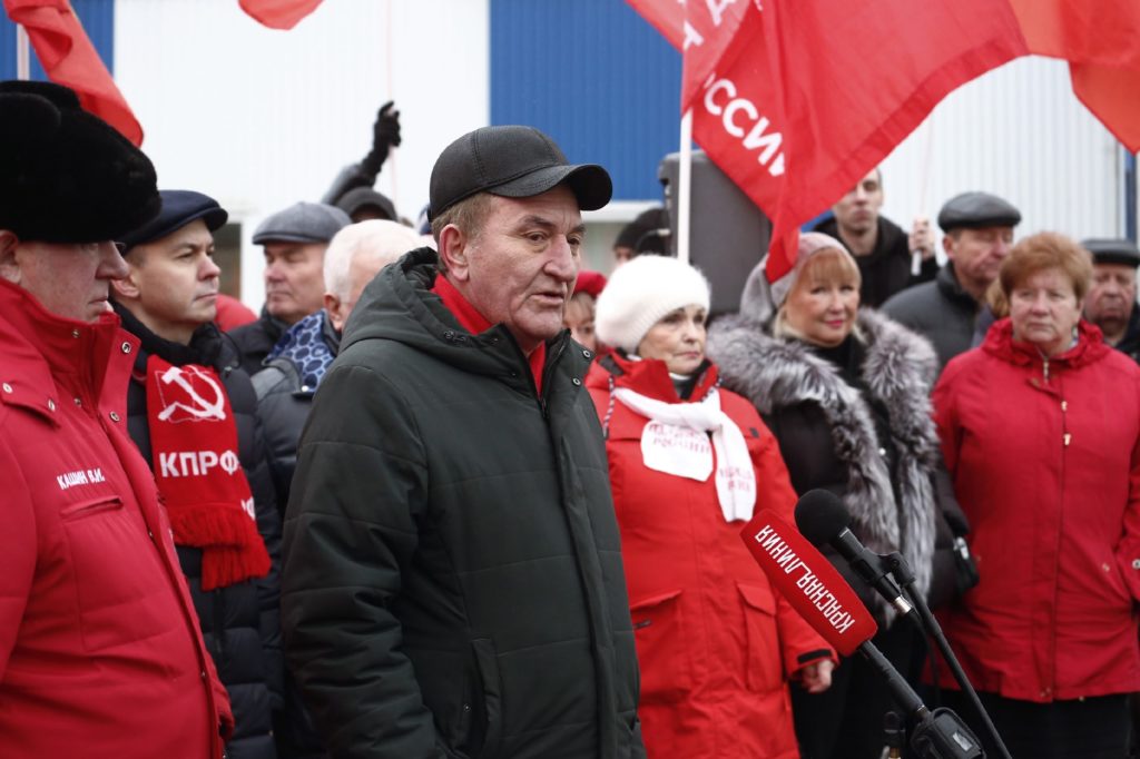 Во время импровизированного митинга были вручены партийные и комсомольские билеты недавно вступившим в ряды КПРФ и ЛКСМ РФ.