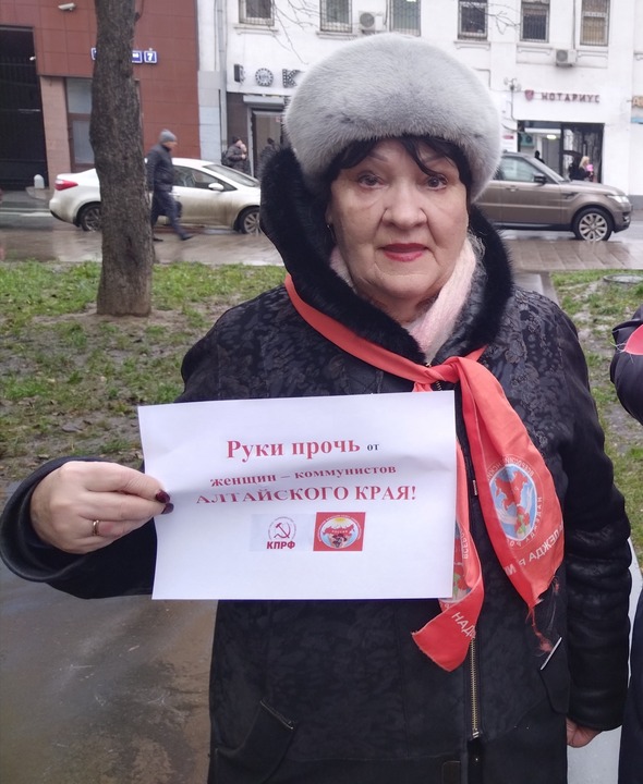 Активистки Московского городского отделения ВЖС «Надежда России» организовали серию одиночных пикетов в знак протеста против расправы с алтайскими коммунистками, многодетными матерями. Публикуем фоторепортаж одиночных пикетов.
