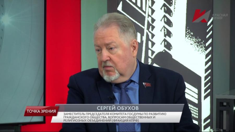 В студии наш гость — Сергей Павлович Обухов, заместитель председателя комитета Государственной Думы по развитию гражданского общества, вопросам общественных и религиозных объединений, член фракции КПРФ, доктор политических наук. Сергей Павлович, добрый день.