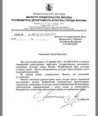 Ответ подписан руководителем Департамента культуры Москвы А.А. Фурсиным.