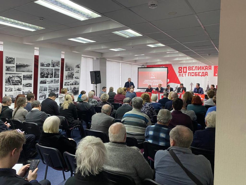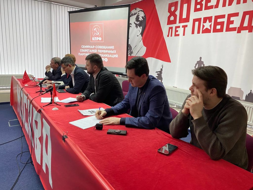 В субботу, 14 февраля, состоялся семинар-совещание секретарей первичных партийных организаций МГО КПРФ. В президиуме присутствовали Первый Секретарь МГК КПРФ, член Президиума ЦК КПРФ В.А. Царихин, Второй Секретарь МГК КПРФ В.В. Обуховский, секретари московского городского комитета Д.А. Парфенов, П.М. Тарасов, Б.В. Мызгин, Н.Б. Геращенко.