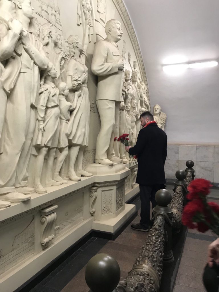 После мероприятия группа коммунистов Москвы во главе с первым секретарем МГК КПРФ, с членом Президиума ЦК КПРФ В.А. Царихиным в составе второго секретаря МГК КПРФ В.В. Обуховского, секретаря МГК КПРФ П.М. Тарасова отправилась на станцию метро «Таганское» и возложила цветы к горельефу И.В. Сталина.