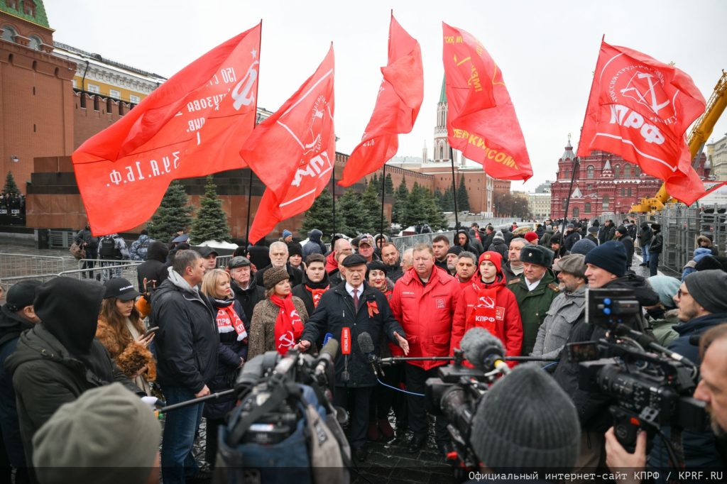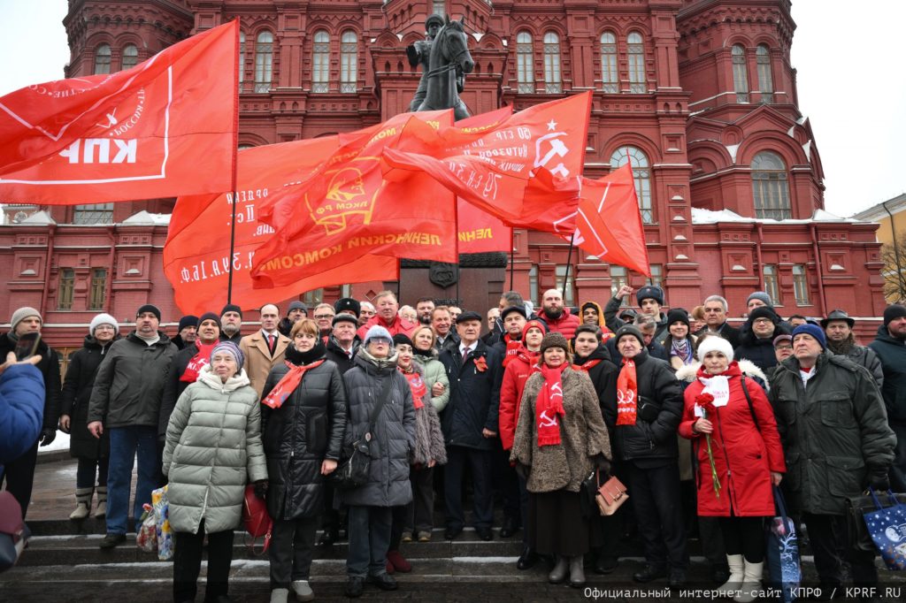 В 10:30 коммунисты и их сторонники собрались на Манежной площади у памятника Маршалу Победы Г.К. Жукову. Затем колонна с Красными флагами направилась в сторону Красной площади. Впереди шли депутаты Государственной Думы, Московской городской Думы, Московской областной Думы, муниципальные депутаты, руководители и видные представители Центрального комитета КПРФ, Московского городского комитета КПРФ и Московского областного комитета КПРФ, других левопатриотических организаций. В их числе – руководители ЦК КПРФ во главе с председателем ЦК КПРФ, руководителем фракции коммунистов в Государственной Думе Г.А. Зюгановым, первым заместителем председателя ЦК КПРФ Ю.В. Афониным, заместителем председателя ЦК КПРФ, руководителем Общероссийского штаба протестных действий В.И. Кашиным, секретари ЦК КПРФ С.П. Обухов, председатель Центрального совета РУСО И.Н. Макаров и председатель Центрального комитета ЛКСМ РФ В.П. Исаков, член Президиума ЦК КПРФ, первый секретарь МГК КПРФ В.А. Царихин, второй секретарь МГК КПРФ В.В. Обуховский, секретари МГК КПРФ Б.В. Мызгин и П.М. Тарасов, первый секретарь Московского областного отделения КПРФ Н.И. Васильев, секретарь Московского обкома КПРФ, заместитель председателя Московской областной Думы, руководитель фракции коммунистов в Мособлдуме А.А. Наумов, первые секретари МПО КПРФ г. Москвы «Бабушкинское», «Ворошиловское», «Куйбышевское», «Красногвардейское», «Советское» Н.В. Кутлунина, А.Д. Лысков, Л.Я. Ситникова, С.К. Тимохов, С.Б. Курганский.
