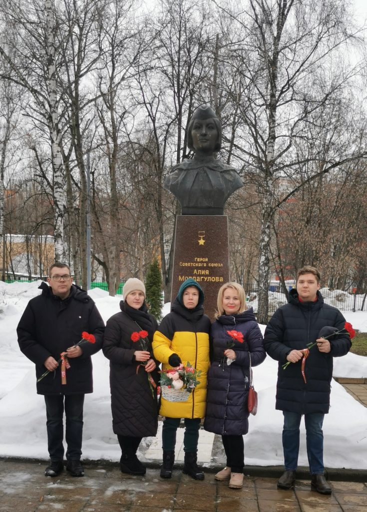 Координатор протестной работы МГК КПРФ Мысина Вера и товарищи «Сталинградского» местного партийного отделения КПРФ — секретарь по работе с молодёжью Наталия Хрусталева, Сергей Масленников, Гелия Умярова и Дмитрий Казаринов пришли к памятнику Алии у школы № 1512 в Вешняках ВАО, которая находится на улице её же имени, чтобы почтить её память и оставить цветы. Мы считаем — Алия Молдагулова та, на кого нужно равняться, кого надо помнить, чью славу надо передавать из поколения в поколение!