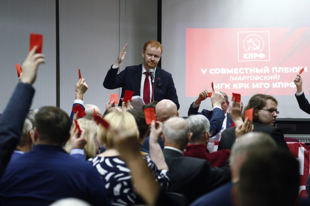 По третьему вопросу «О заявлении МГК КПРФ» выступил секретарь МГК КПРФ Парфенов Д.А.