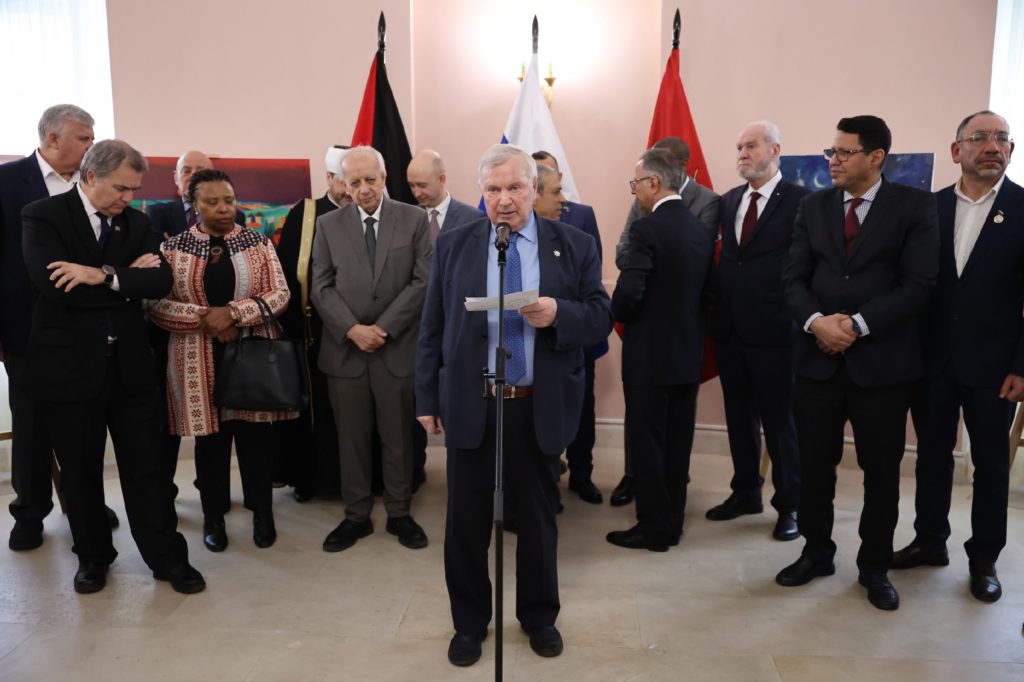 Обращаясь к теме борьбы народа Палестины за национальное возрождение, за защиту суверенитета, мы не только отдаем дань памяти вашим предкам, сражавшимся против внешней агрессии. В настоящее время, в условиях обострения международной напряжённости, эскалации агрессивных действий США и их сателлитов, прямого покушения на независимость стран и народов возрастает значимость сплочения всех прогрессивных и антиимпериалистических сил, их решительного противодействия разрушительным планам «глобализма» и его пособников. Мировая олигархия оказывает грубое давление на Россию, на Кубу, на Венесуэлу, целенаправленно раздувает пламя пожара войны на Ближнем Востоке. Военные удары по Ирану, регулярно наблюдающиеся кровавые вылазки против Палестины не оставляют сомнений в готовности империалистов окончательно решить вопрос в свою пользу ценой стирания с земли непокорных мировым «элитам» народов.