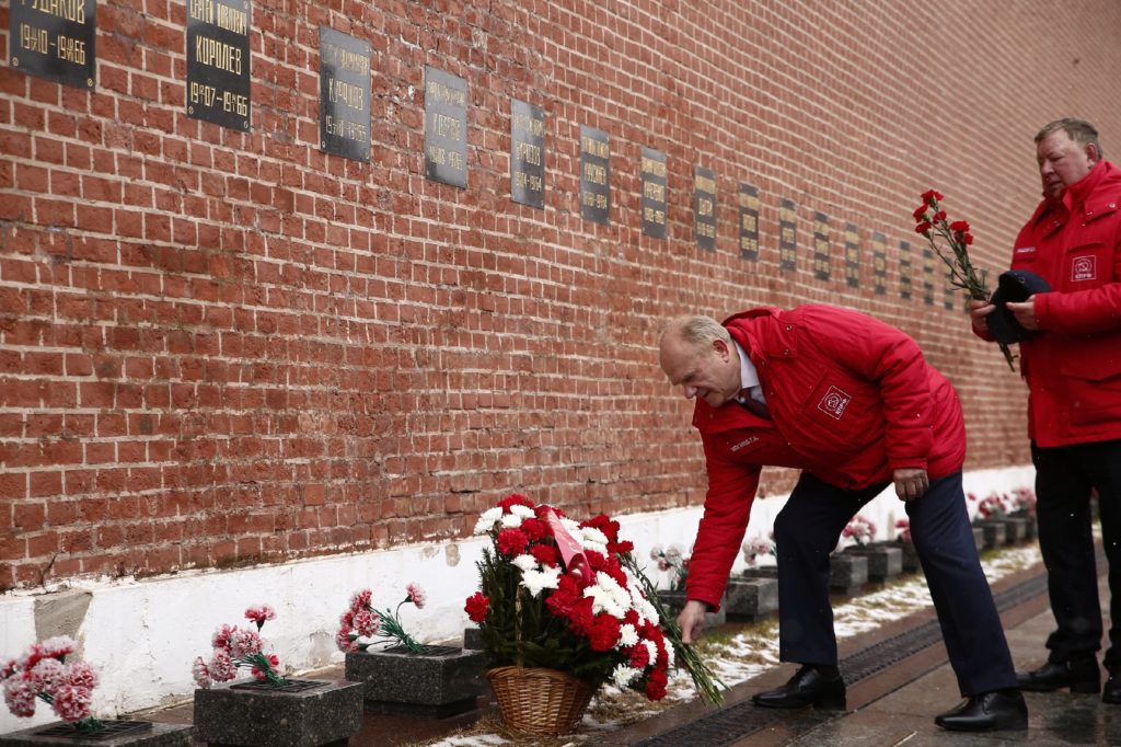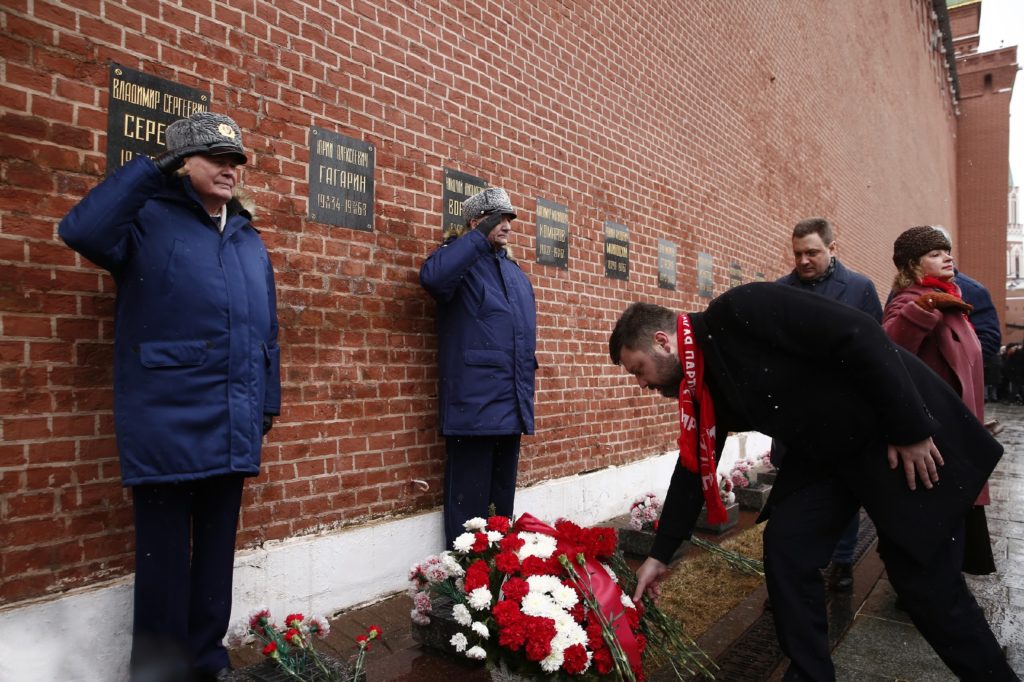 10 апреля 2026 года КПРФ провела торжественную церемонию возложения цветов и венков к месту захоронения Советских космонавтов и учёных у Кремлёвской стены