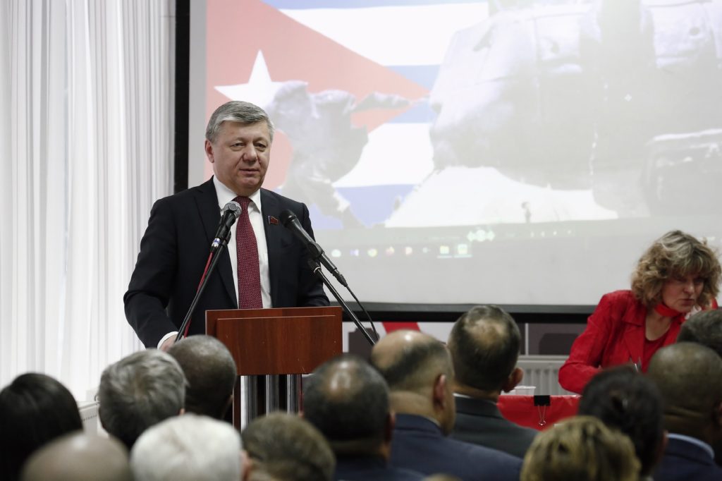 Заместитель председателя ЦК КПРФ, первый заместитель председателя Комитета Государственной Думы по международным делам Д.Г. Новиков передал кубинским товарищам приветственное обращение от имени руководства ЦК КПРФ. Он напомнил о вкладе в борьбе за социализм выдающихся лидеров коммунистического, рабочего и национально-освободительного движения. В условиях эскалации натиска империализма диктуют необходимость укрепления международной солидарности левых сил. В этой связи КПРФ готовит проведения третьего Международного антифашистского форума.